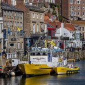 The Upper Harbour, above the swing-bridge, is home to the marina yacht berthing. There’s a nice riverside walk here, with great views across the harbour to the hauntingly spectacular Whitby Abbey ruins.